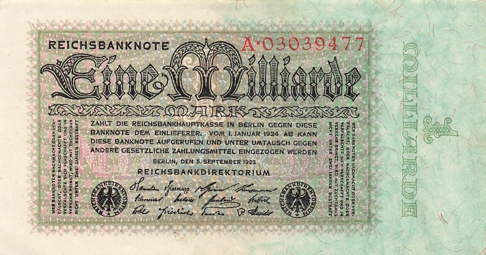 Original Reichsbanknote 1 Milliarde Mark 5.9.1923 DEU-131a Zustand: Gebraucht,top Erhaltung