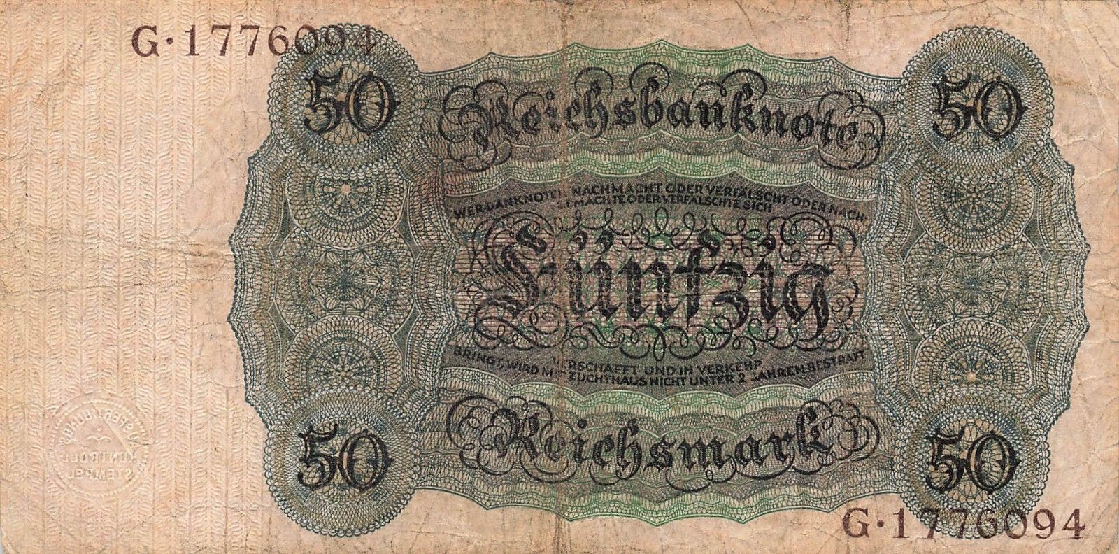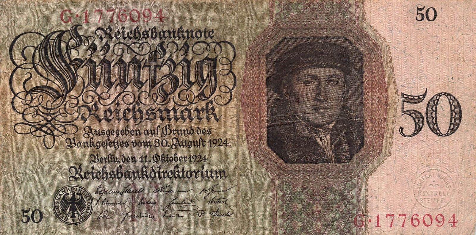 Reichsbanknote 50 Reichsmark 1924 DEU-176a N/G