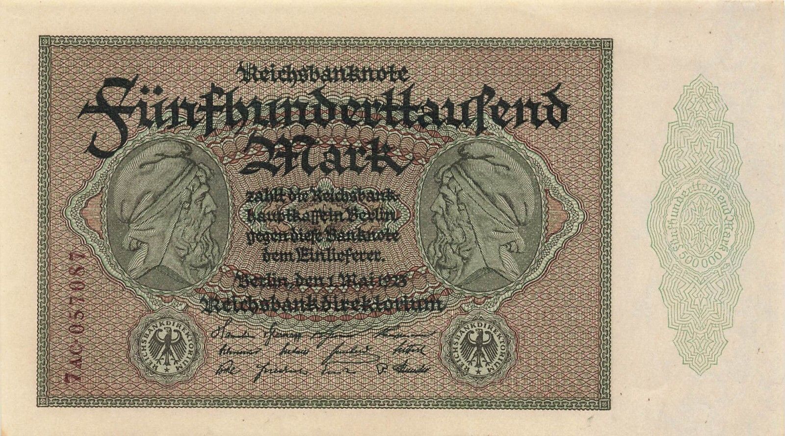 Original Reichsbanknote 500 000 Mark 1.5.1923 DEU-99f