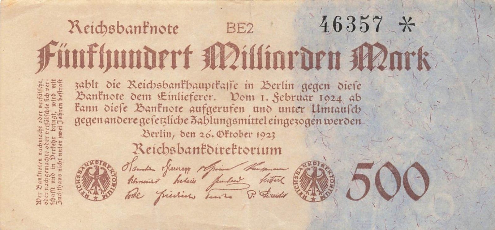 Original Reichsbanknote 500 Milliarden 26.10.1923 Mark DEU-152d Zustand: Gebraucht Sie können Auktionen sammeln und bezahlen nur einmal Versandkosten . Nach Ablauf der Auktionen , werden Sie eine Email erhalten in der alle Ihre gekauften Artikel zusammengefasst werden. Bitte Beachten Sie alle Artikel über 20 EUR w erden als Einschreiben berechnet.