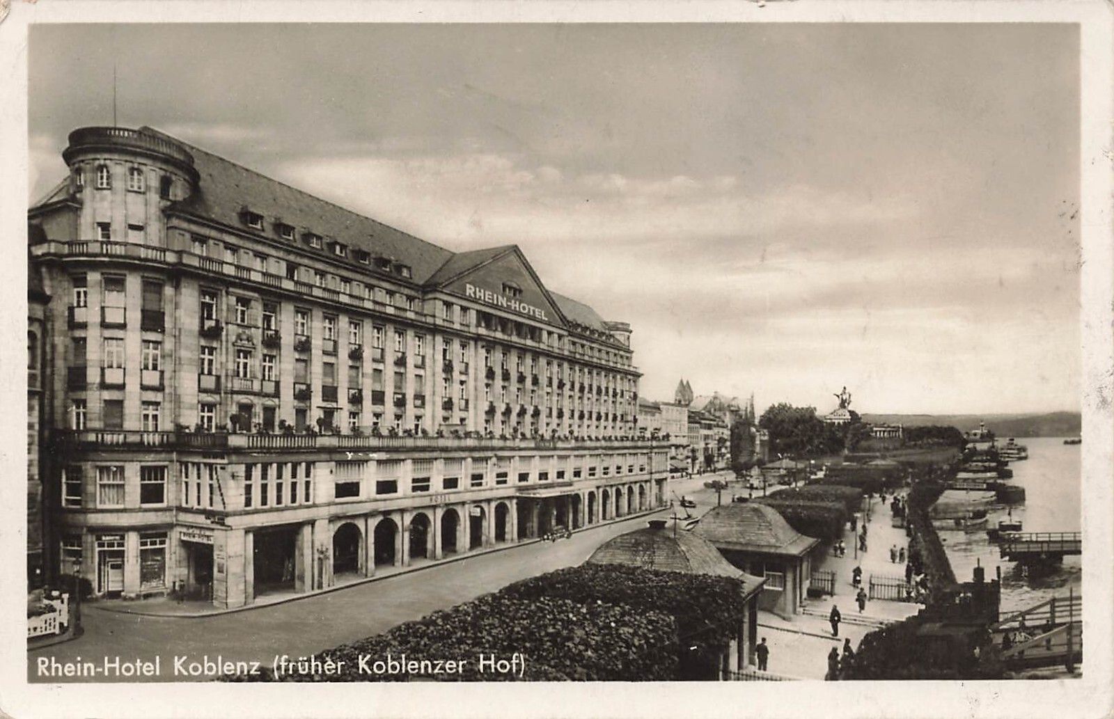 Rhein-Hotel in Koblenz Rheinland-Pfalz Postkarte AK 1938