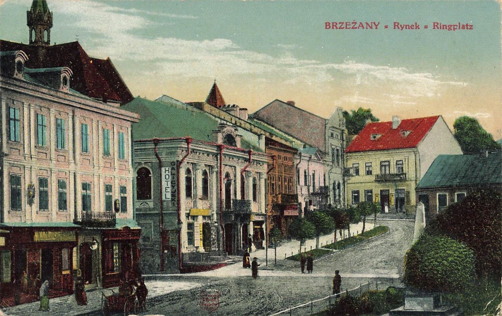 Ringplatz mit Hotel - Rynek in Brzezany Bereschany Ukraine Postkarte AK 1917