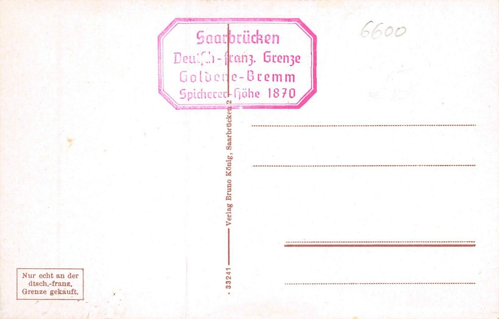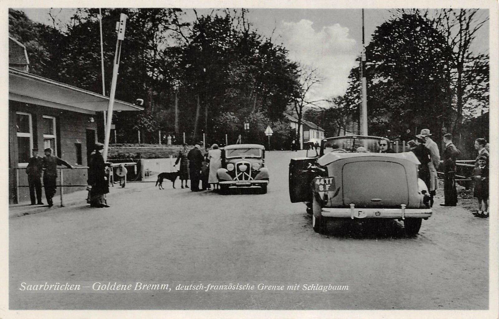 Saarbrücken Goldene Bremm deutsch-französische Grenze Schlagbaum Postkarte AK