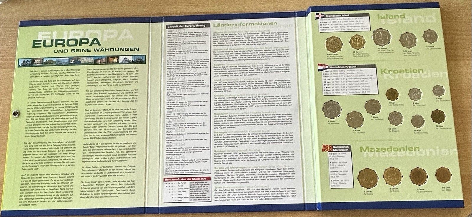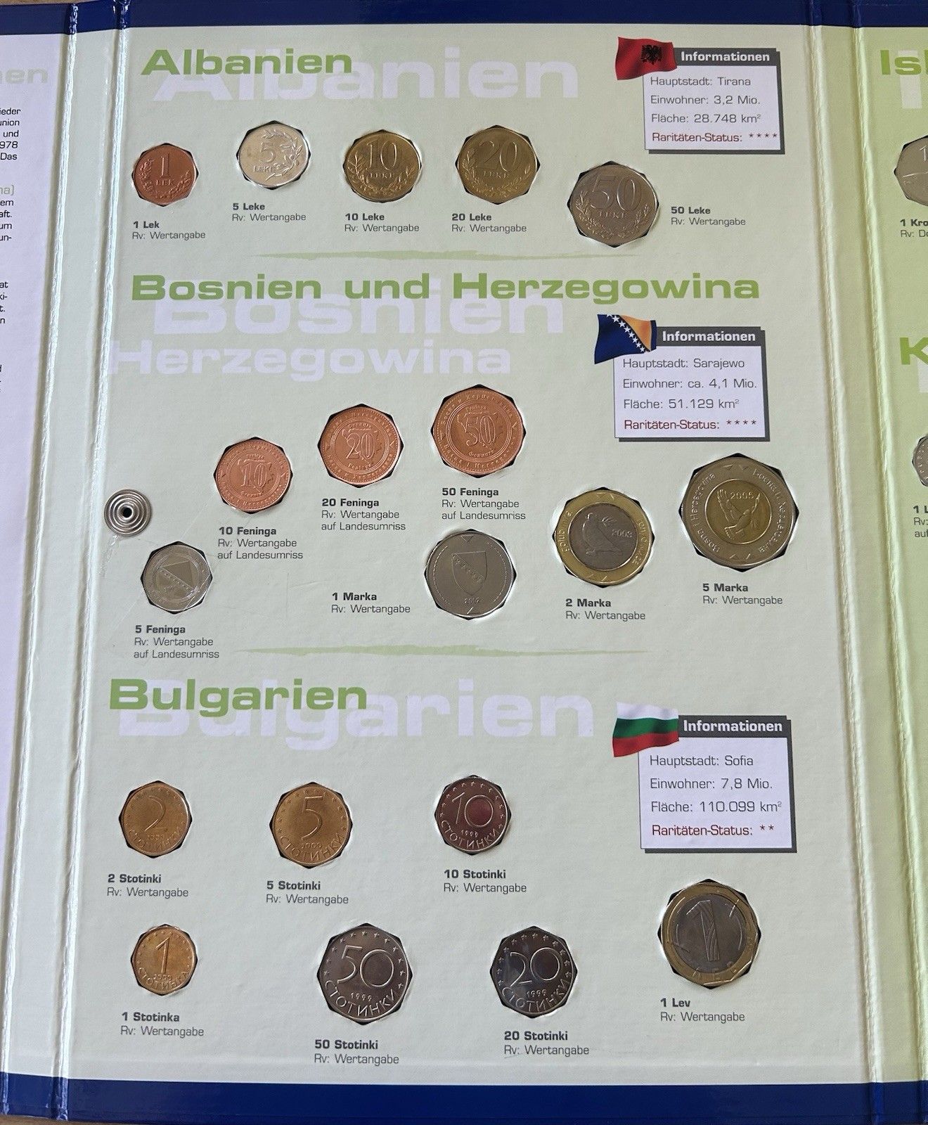 Das Album enthält Platz für Münzen von Ländern wie Albanien, Bosnien und Herzegowina, Bulgarien, Island, Kroatien, Mazedonien, Norwegen, Rumänien, Serbien und Montenegro sowie der Türkei.
