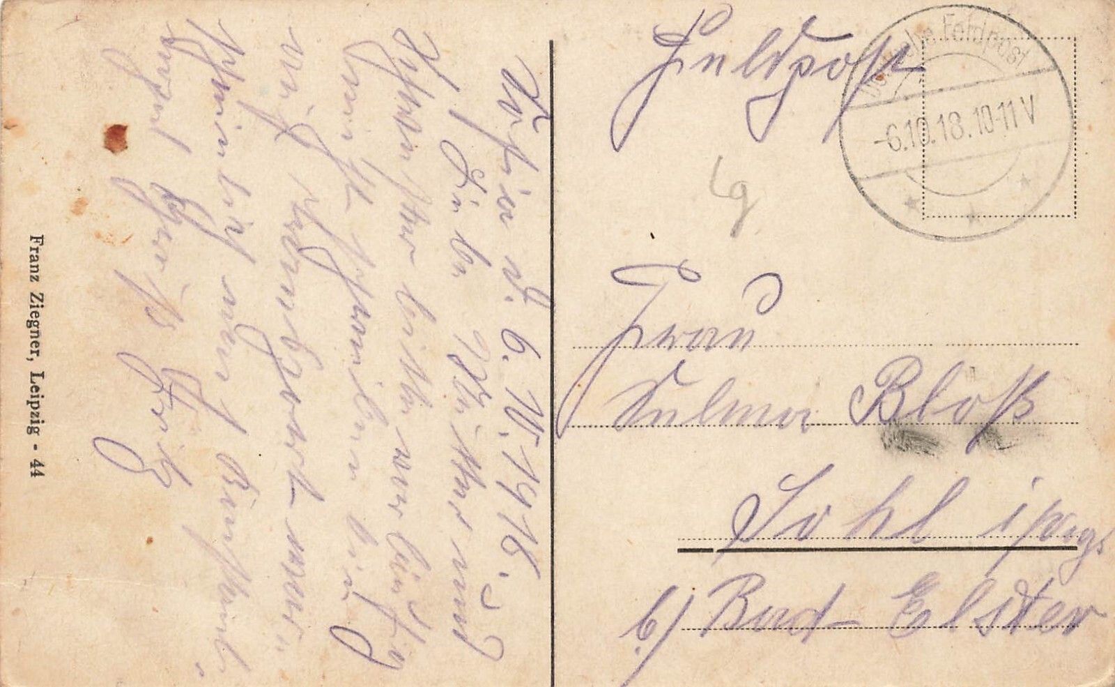 Original Postkarte Maße 9 x 14 cm Rückseite: gelaufen 1918 Zustand: leichte Gebrauchsspuren