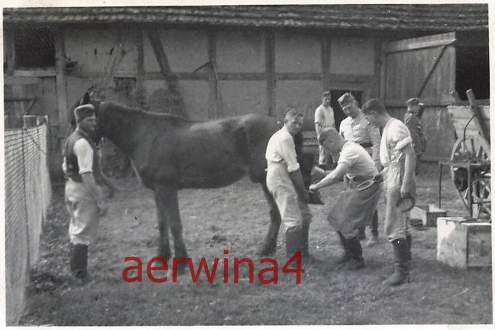 Soldaten helfen Feldschmied bei der Arbeit am Pferd Belgien
