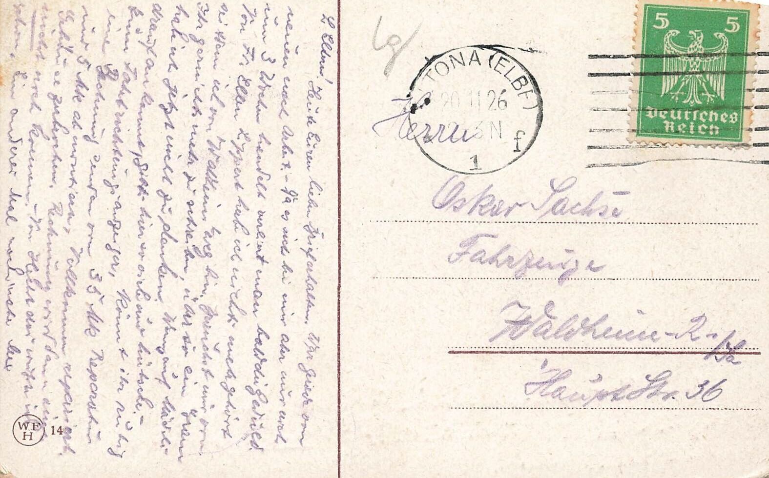 Original Postkarte Maße 9 x 14 cm Rückseite: gelaufen 1926 Zustand: leicht gebraucht