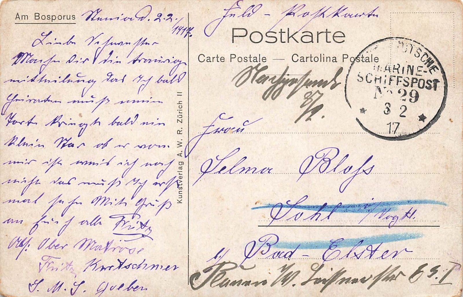 Stenia Bosporus Konstantinopel Türkei Deutsche Schiffspost Nr. 29 AK 1917