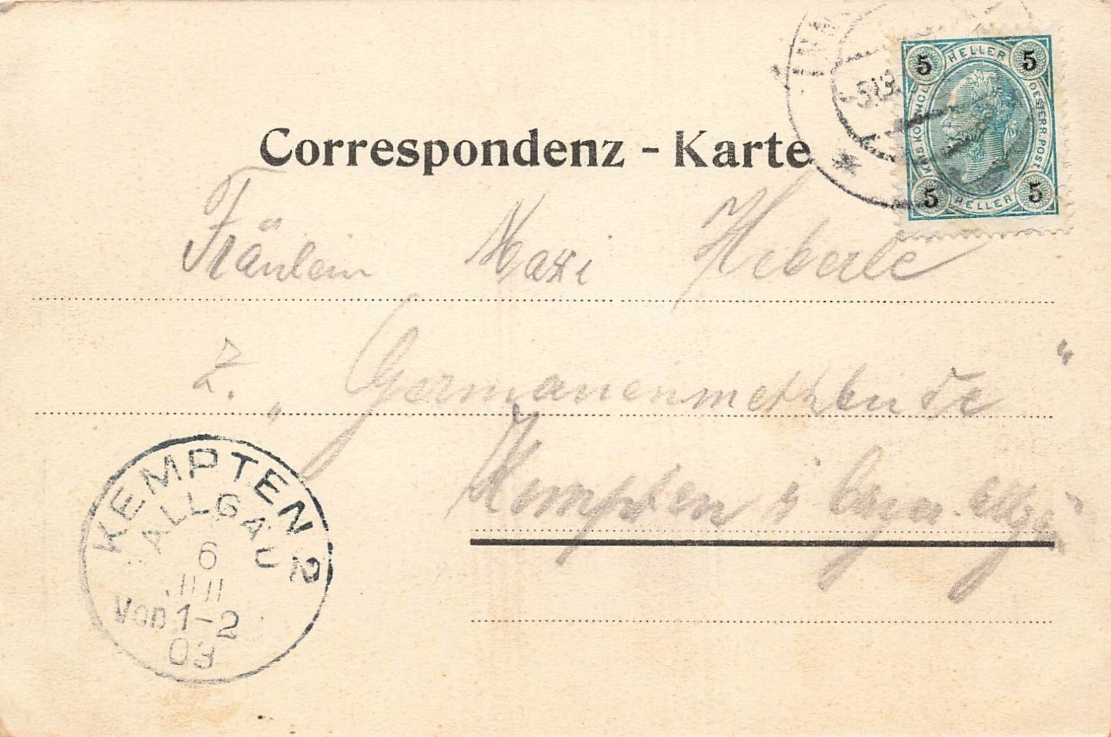 Original Postkarte Maße 9 x 14 cm Rückseite: gelaufen 1903 Zustand: gute Erhaltung