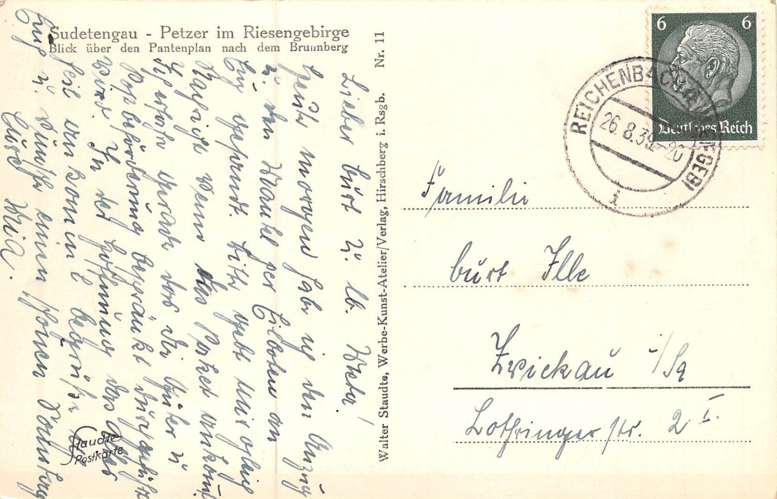 Original Postkarte Maße 9 x 14 cm Rückseite: gelaufen 1939 von Reichenbach Zustand: gute Erhaltung