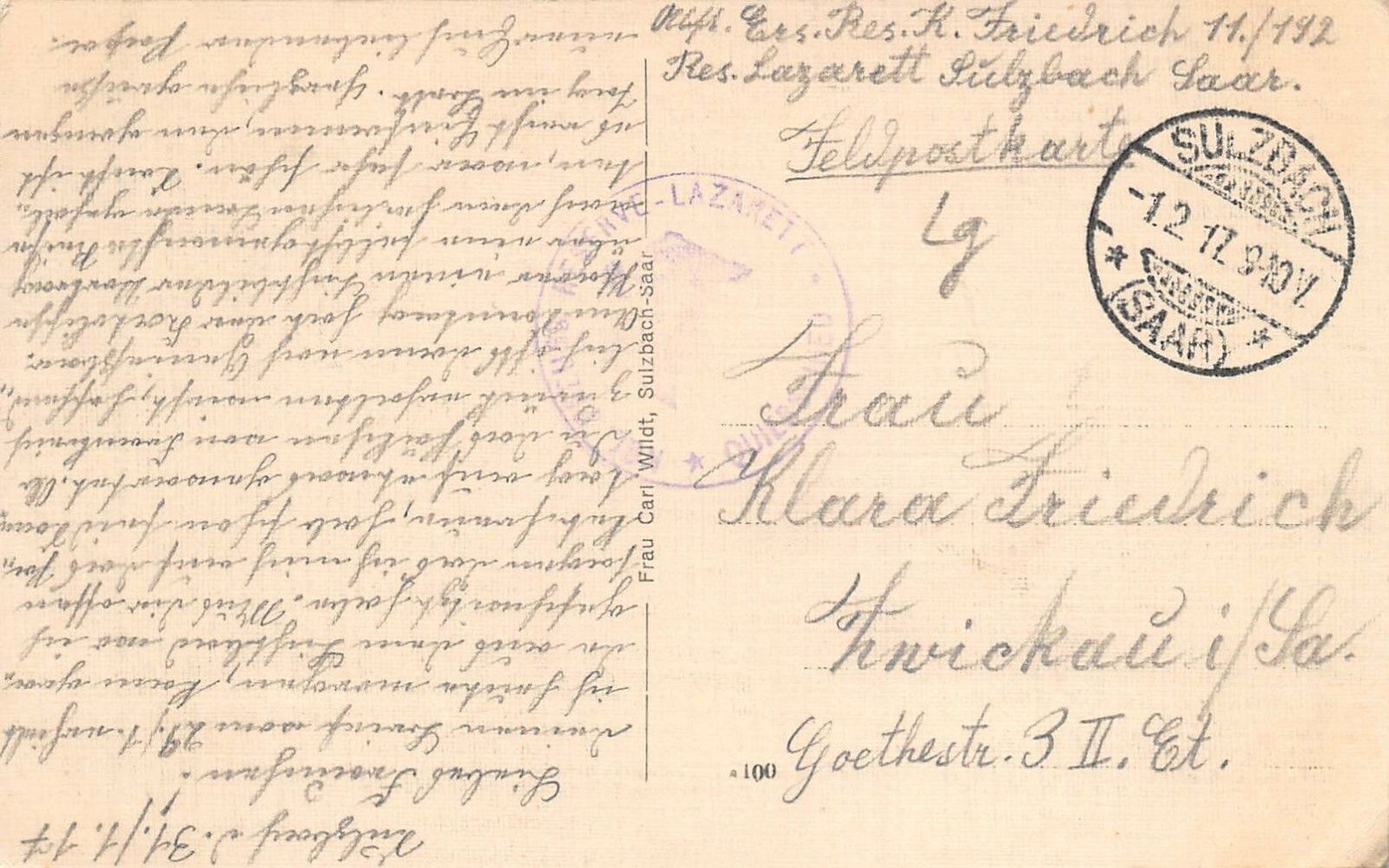 Sulzbach-Saar Knappschaftslazarett Postkarte 1917