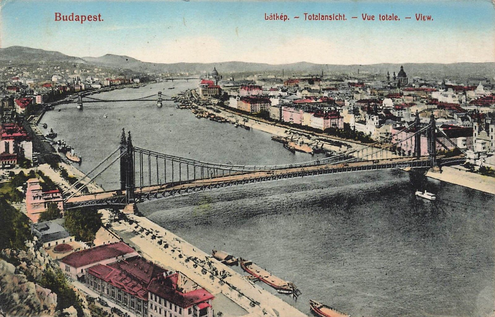 Totalansicht mit Brücke von Budapest Ungarn Postkarte AK 1915