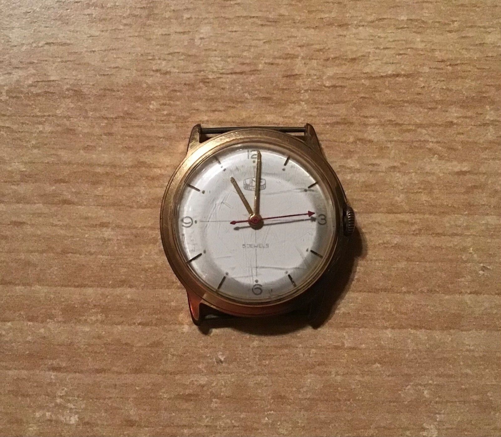Herren Uhr UMF Ruhla 5 Jewels DDR Mechanische Handabzug , funktioniert. Zustand: gebraucht, siehe Bilder