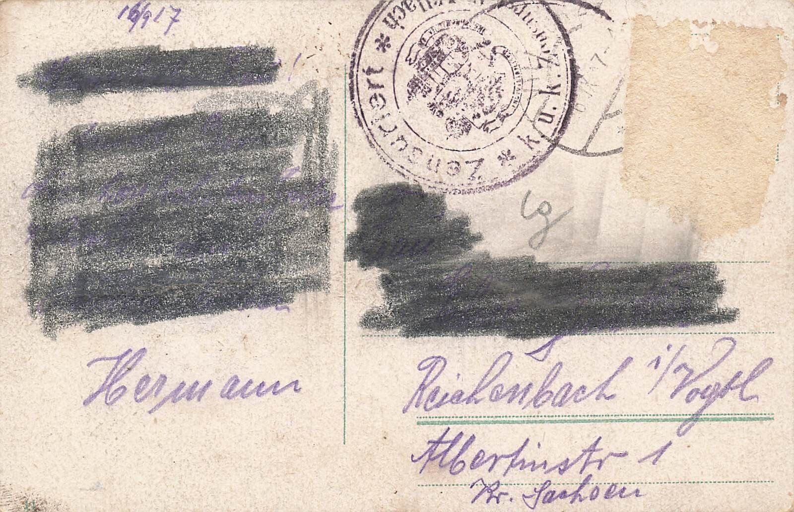 Rückseite: gelaufen 1917