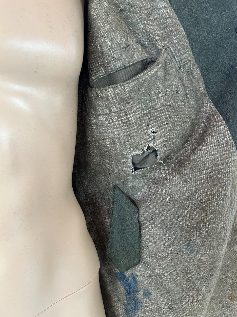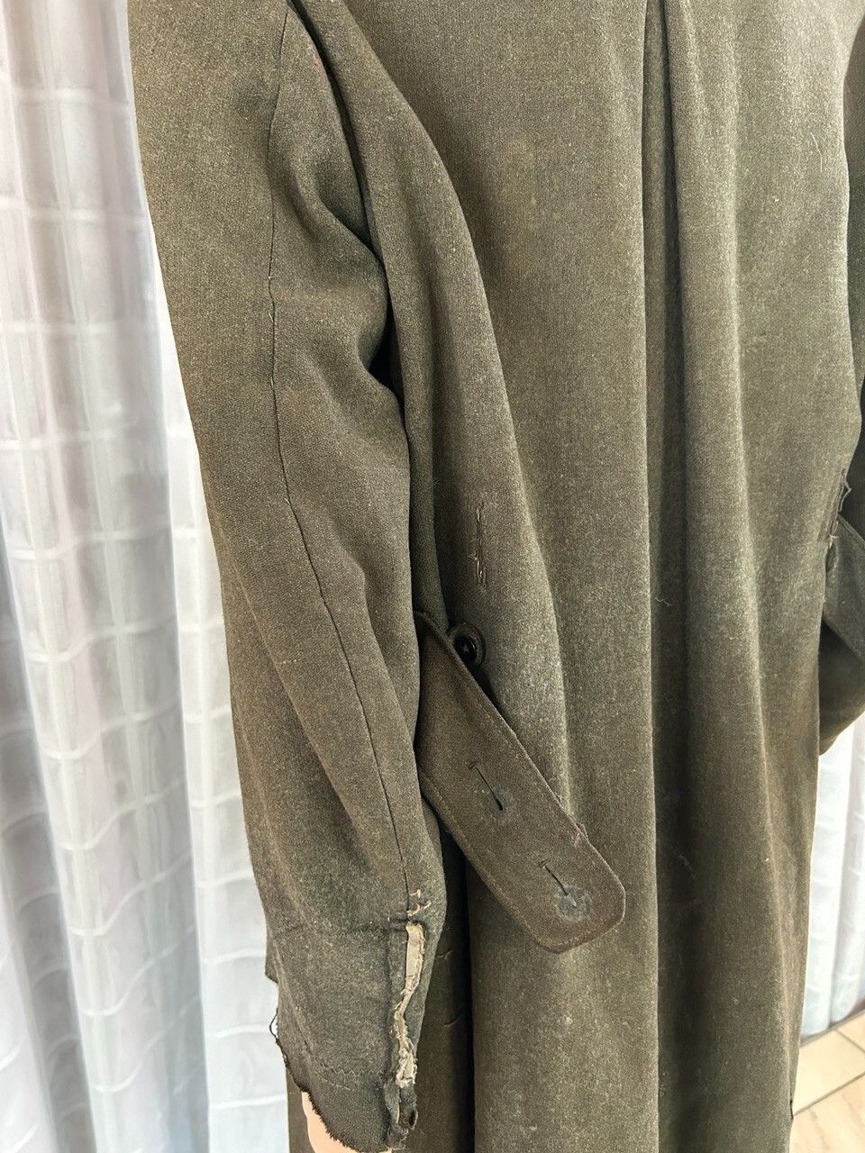 Wehrmacht Heer Mantel Feldgrau, Feldmantel Original Wehrmacht Mantel Zustand: gebraucht, Mottenschäden (siehe Bilder), linker Ärmel beschädigt