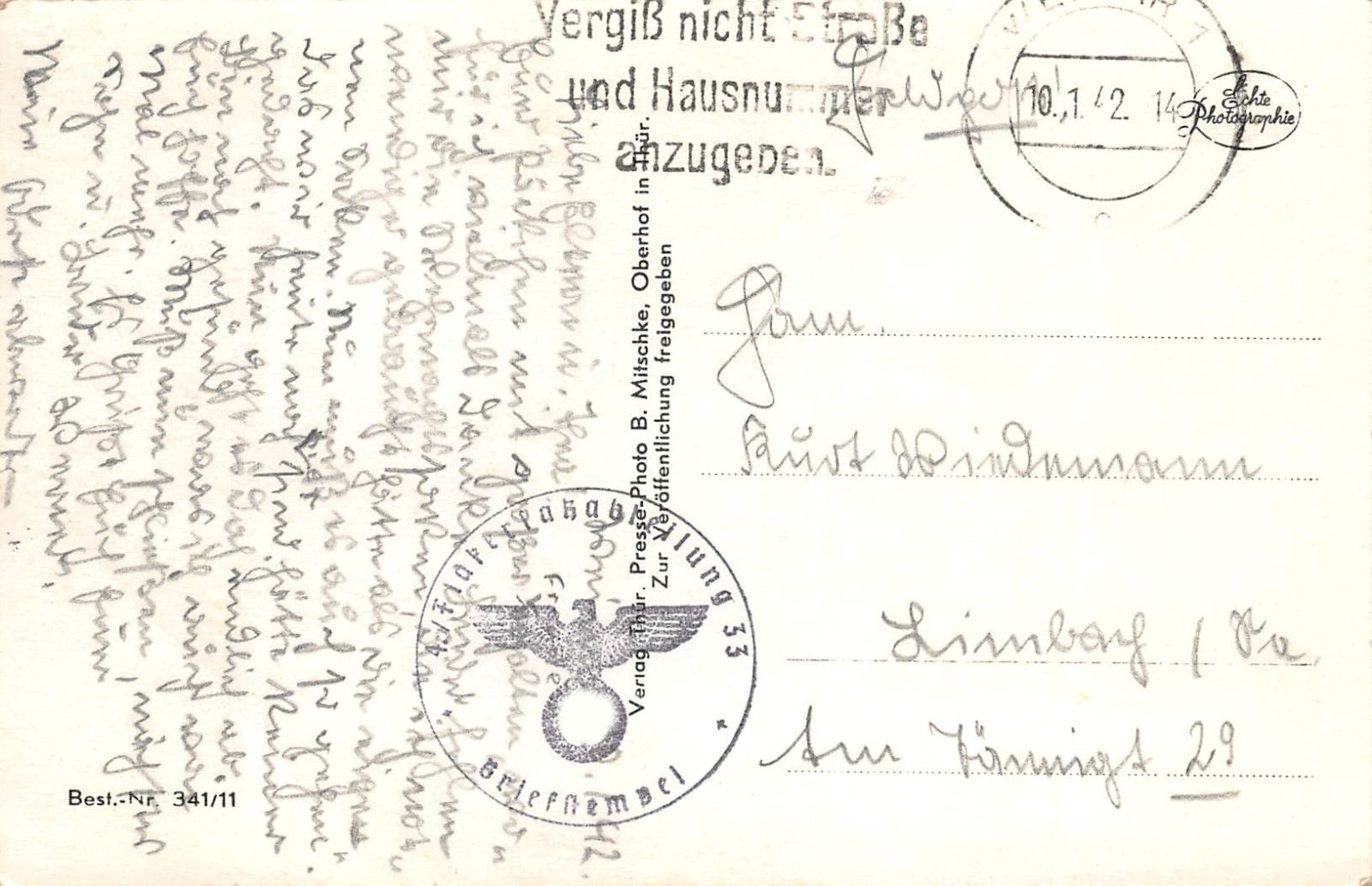 Original Postkarte Maße: 9 x 14 cm Rückseite: gelaufen 1942 Zustand: leichte Knick