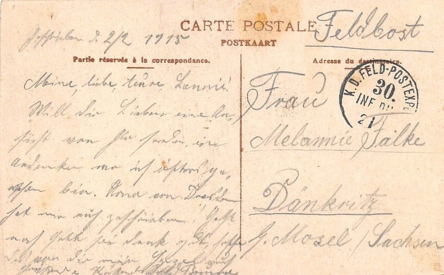 Original Postkarte Maße 9 x 14 cm Rückseite: gelaufen 1915 Zustand: gute erhaltung