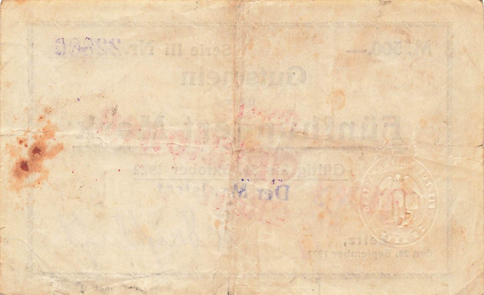 Original Zeitz, Stadt, 2 Millionen Mark Überdruck a. 500 Mark Notgeld 28.9.1922 Zustand: gebraucht Echtheit wird garantiert.