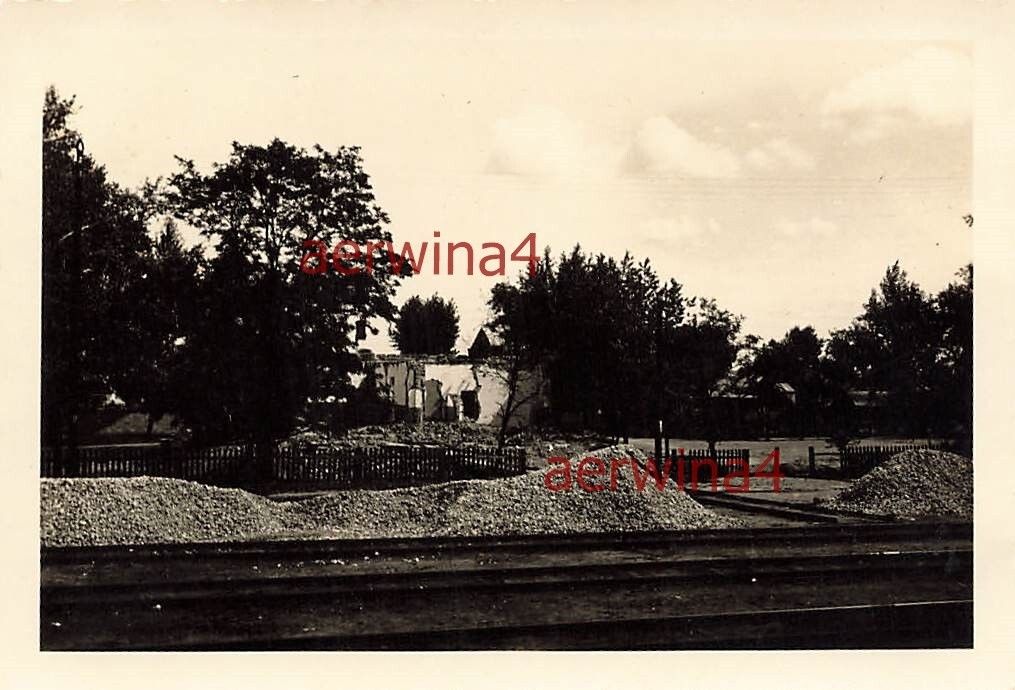 Zerstörte Häuser an den Gleisen am Bahnhof Radom Polen