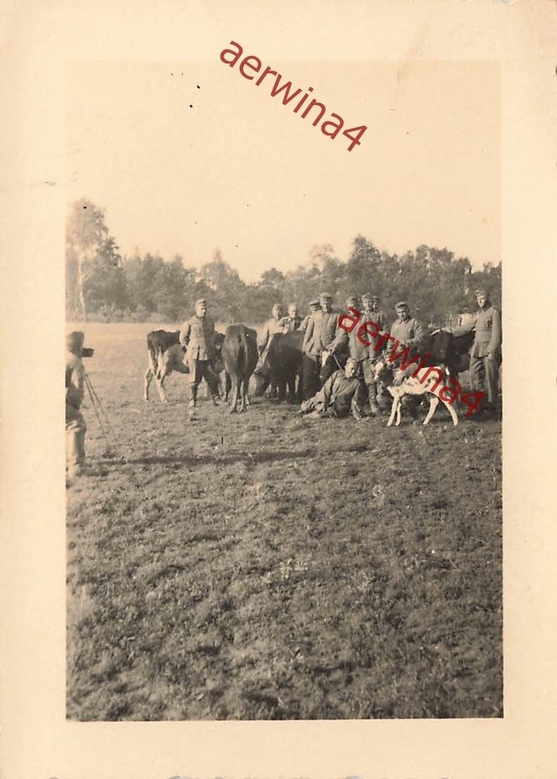 Zusammengetriebenes Vieh aus niedergebrannten Häusern Smolarze Warthe